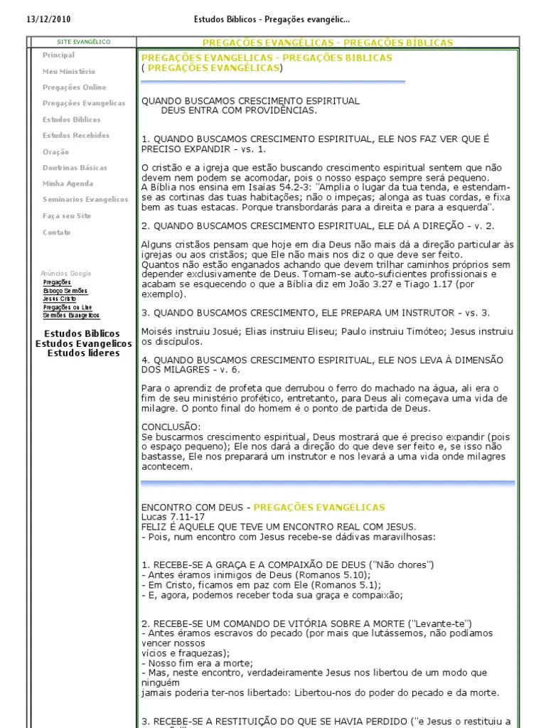Esboços de sermões selecionados > destaque:. Esboços que ajudam a organizar a fala durante a apresentação da mensagem. Receba estudos bíblicos totalmente grátis no seu email. Sabe porque você não agrada a deus? Encontre aqui pregações e estudos bíblicos para fortalecer sua intimidade com jesus. Esboços de sermões selecionados > destaque: Um rico material para estudar a bíblia de forma simples e com seriedade. Sermões escritos elaborados para ministrar pregações. Receba estudos bíblicos totalmente grátis no seu email.
